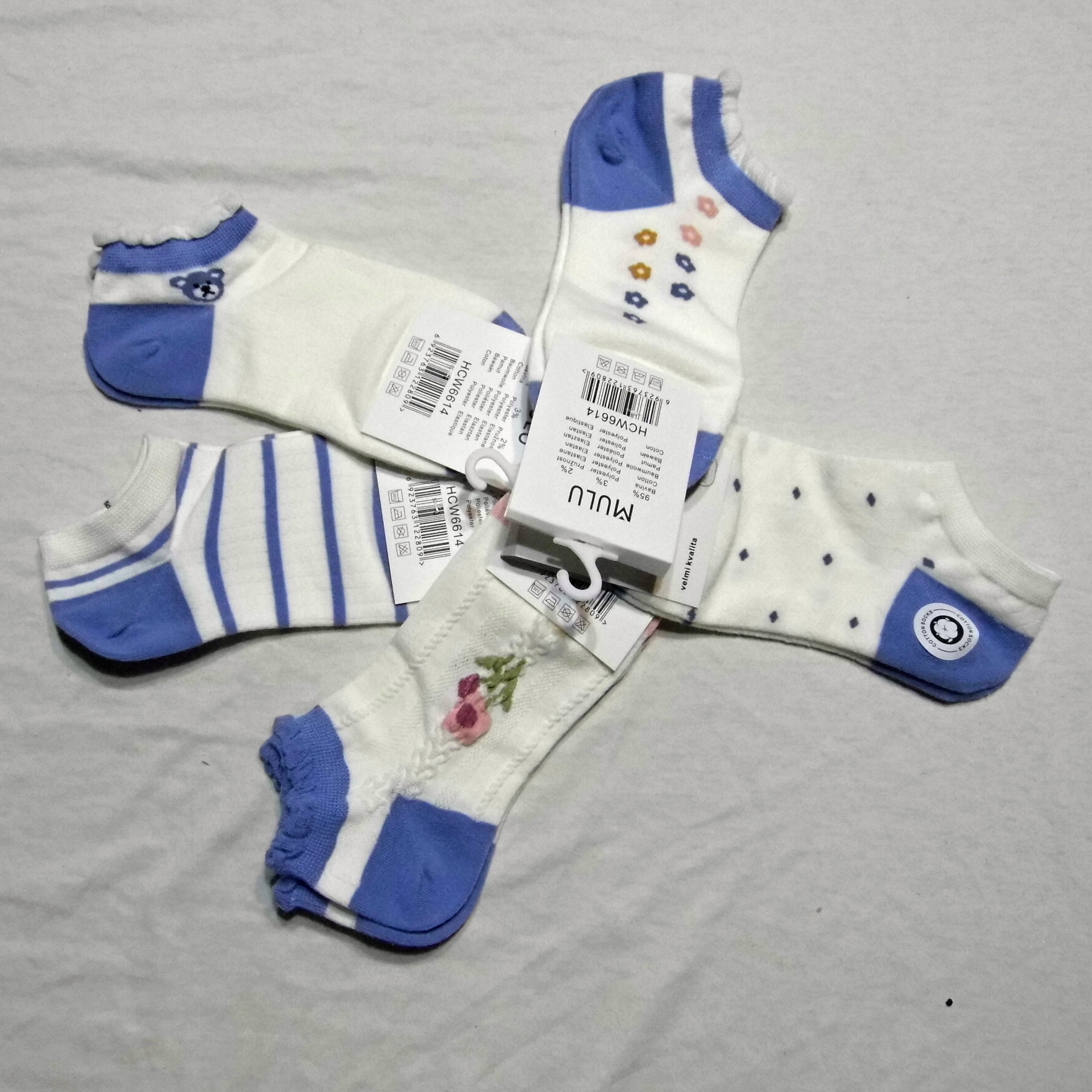 3. Dámské bavlněné kytičkové 3D ponožky modré