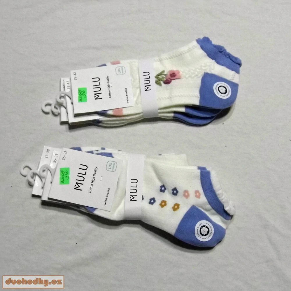Dámské  snížené  bavlněné ponožky s veselým motivem květů . Lem zdobený kanýrkem, různé vzory, některé v 3D provedení. Složení :95% bavlna 3% polyester, 2% elastan baleno mix po 3 párech . cena za 1 pár nabízíme 2 velikosti :35-38  a nebo 39-42 celý popis
